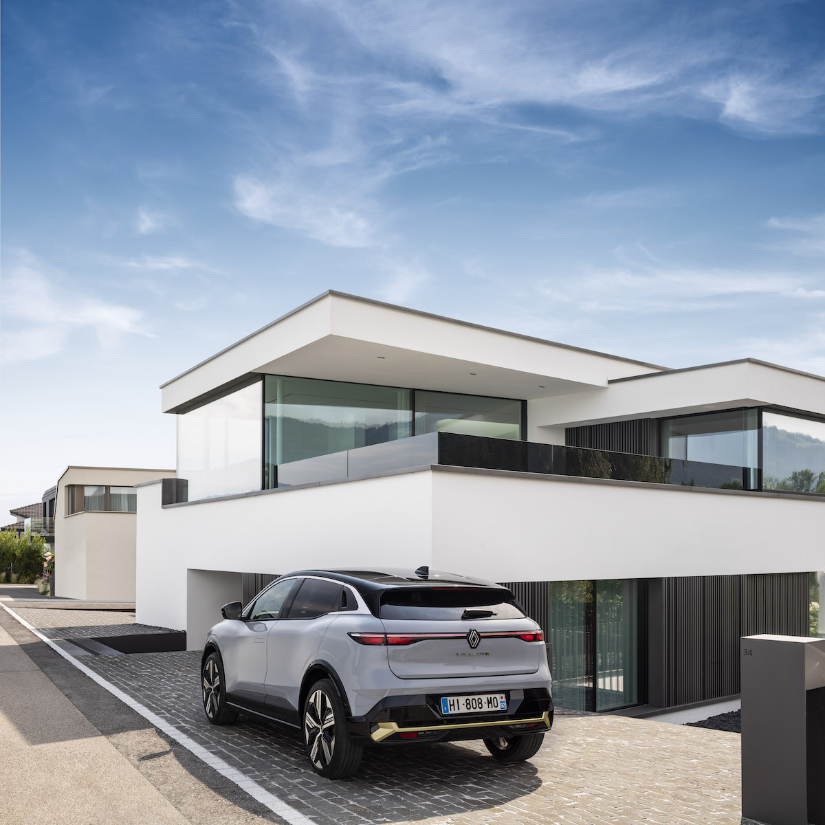 Yeni CMF-EV modüler platformunun sağladığı uzun aks mesafesi (2,70 metre aks mesafesi ve 4,21 m toplam uzunluk) ve azaltılmış ön ve arka aks çıkıntılarla ile Yeni Megane E-TECH Electric, benzersiz gövde orantıları sergiliyor. Bu gövde orantıları tasarımcılara, ustaca tasarlanan bir ayak izine sahip güçlü bir otomobil tasarlama fırsatı veriyor. Batarya 110 mm ile her zamankinden daha ince. 20 inçlik jantlar, alt tarafta koruyucu bantlar, çamurluk kaplamaları ve yüksek omuz çizgisi gibi doğrudan crossover dünyasına ait detaylar güçlü ve sağlam bir his uyandırıyor. Alçalan tavan çizgisi, artırılmış iz genişliği ve düz kapı kolları bir coupe görünümünü beraberinde getiriyor. Kabin yüksekliği, genişliği ve bagaj hacmi ise geleneksel hatchback mimarisini andırıyor.