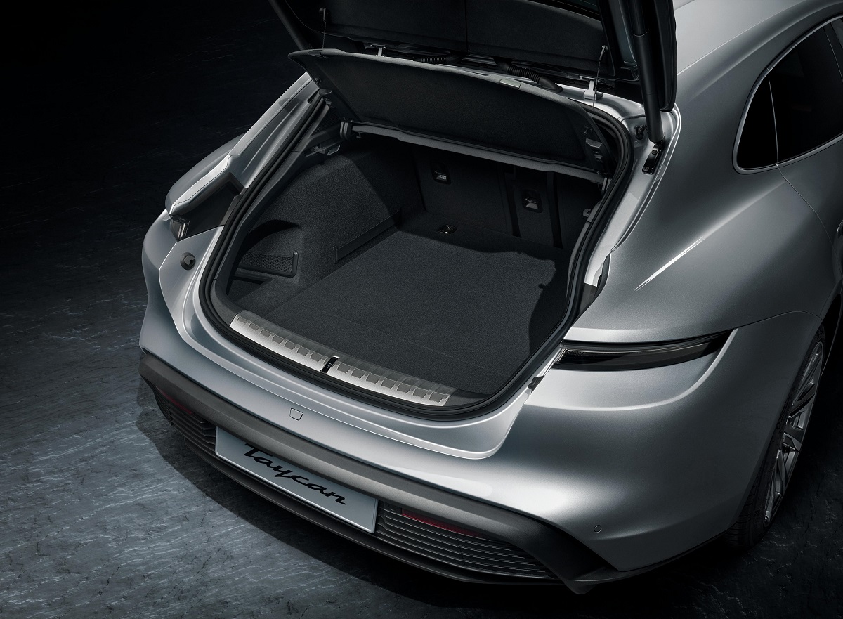 Taycan Sport Turismo modelinde tasarımsal olarak, Taycan Cross Turismo'nun sportif silüeti, arkaya eğimli tavan hattı ve işlevsel tasarımı görülüyor. Kardeş modelinden farklı olarak, Taycan Sport Turismo modelinde herhangi bir off-road tasarım unsuru bulunmuyor. Taycan Sport Turismo ile Taycan Sport Sedan’ın arka baş mesafeleri arasında 45 milimetrenin üstünde bir fark bulunuyor. Sürücü koltuğunun üstünde 9 milimetrelik ilave bir mesafe yer alıyor. Geniş bagaj kapağı, bagaj kısmına rahatlıkla ulaşılabilmesini sağlıyor. 801 milimetre uzunluğundaki ve 543 milimetre yüksekliğindeki bagaj açıklığı, sedan modeline kıyasla (sırasıyla 434 milimetre ve 330 milimetre) çok daha geniş. Arka bagaj hacmi, modele eklenen donanıma bağlı olarak değişiyor. Sound Package Plus ile birlikte bagaj hacmi 446 litreye kadar çıkıyor (Sedan’da 407 litre). Taycan Turbo Sport Turismo’da standart olarak bulunan BOSE® Surround Ses Sistemi’nin eklenmesi durumunda bagaj hacmi 405 litre oluyor. Arka koltuk katlandığında (60:40 katlanabilir koltuk) hacim 1.212 litreye kadar çıkabiliyor.
