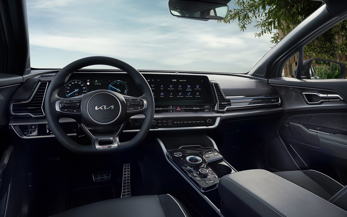 Yeni Sportage’ın ön konsol tasarımında dokunmatik ekranlı, zarif detaylara sahip ve sportif havalandırma ızgaralarıyla bütünleşik kavisli bir ekran bulunuyor. Kavisli ekran, kokpite genişlik ve derinlik kazandırıyor. Yüksek teknolojiye sahip 12,3 inç dokunmatik navigasyonlu ekran, tüm multimedya bağlantıları, işlevsellik ve kullanılabilirlik ihtiyaçları için merkez görevi görüyor. 12,3 inçlik gösterge paneli, son derece hassas ve net grafikler için yeni nesil TFT LCD ekranla donatılıyor. Sürücü ve ön yolcu için en uygun şekilde konumlandırılan ergonomik orta konsol, esnek depolama alanları ve yumuşak döşemelerle üst düzey bir konfor sunuyor. Elektronik vites paneli daha yüksek bir profil üzerinde konumlandırılıyor. Kablosuz telefon şarj alanı, yüksek hızlı 15W şarj olanağı sunuyor.